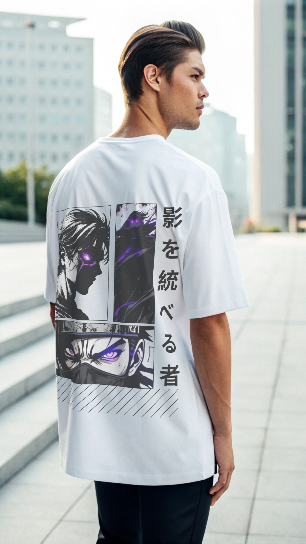Inspired by dark anime aesthetics, the Purple Eye symbolizes hidden strength and awakening. Minimal yet intense, perfect for oversized street looks.